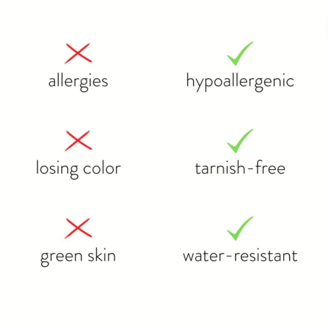 - Waterproof & tarnish-free