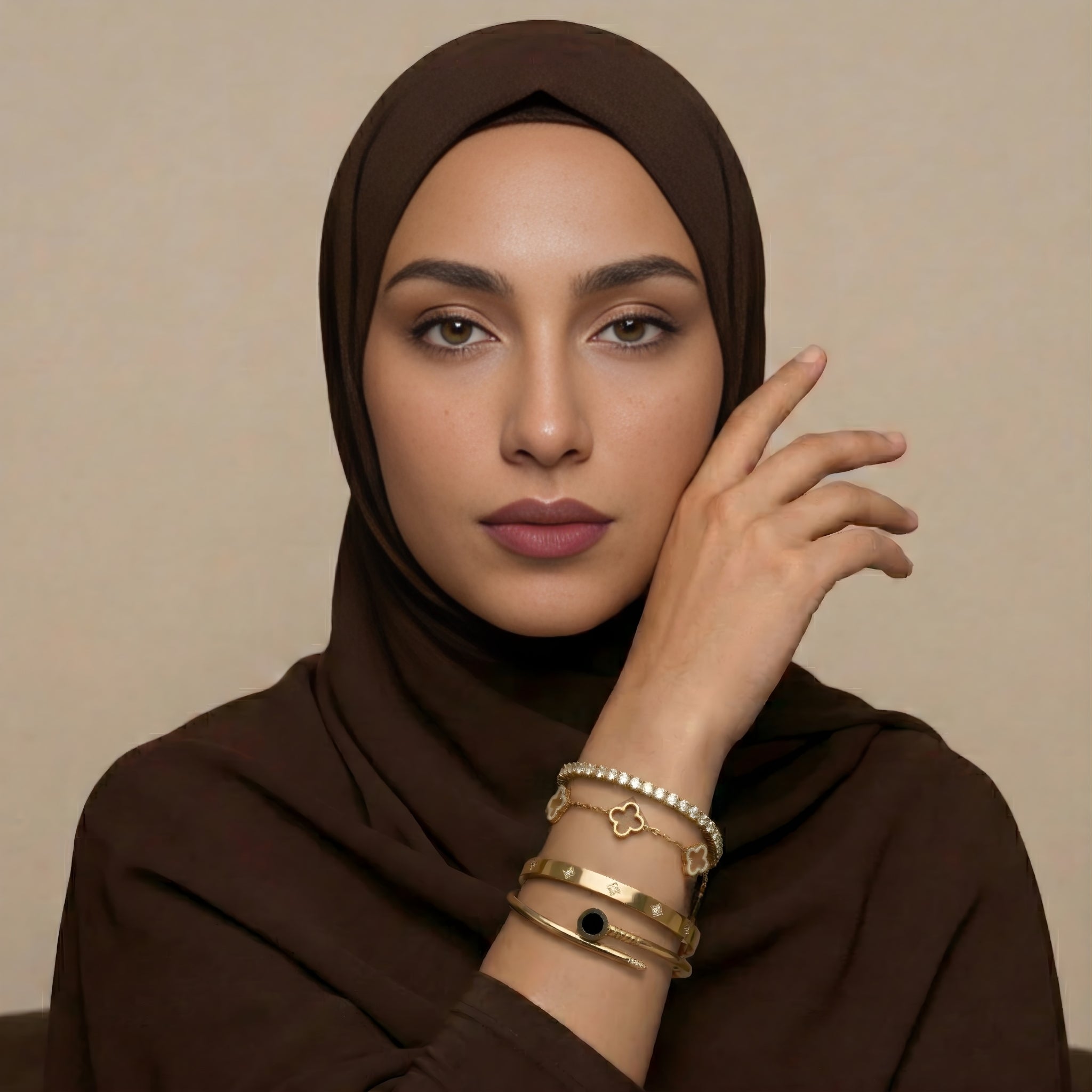 Our pieces are finished with real 18k gold plating over durable, skin-friendly steel, built to be worn every day without worry. But what truly sets Qamar apart is not how our jewelry looks or lasts. It's why it exists. While most brands sell decoration, we create reminders rooted in faith, heritage, and purpose.